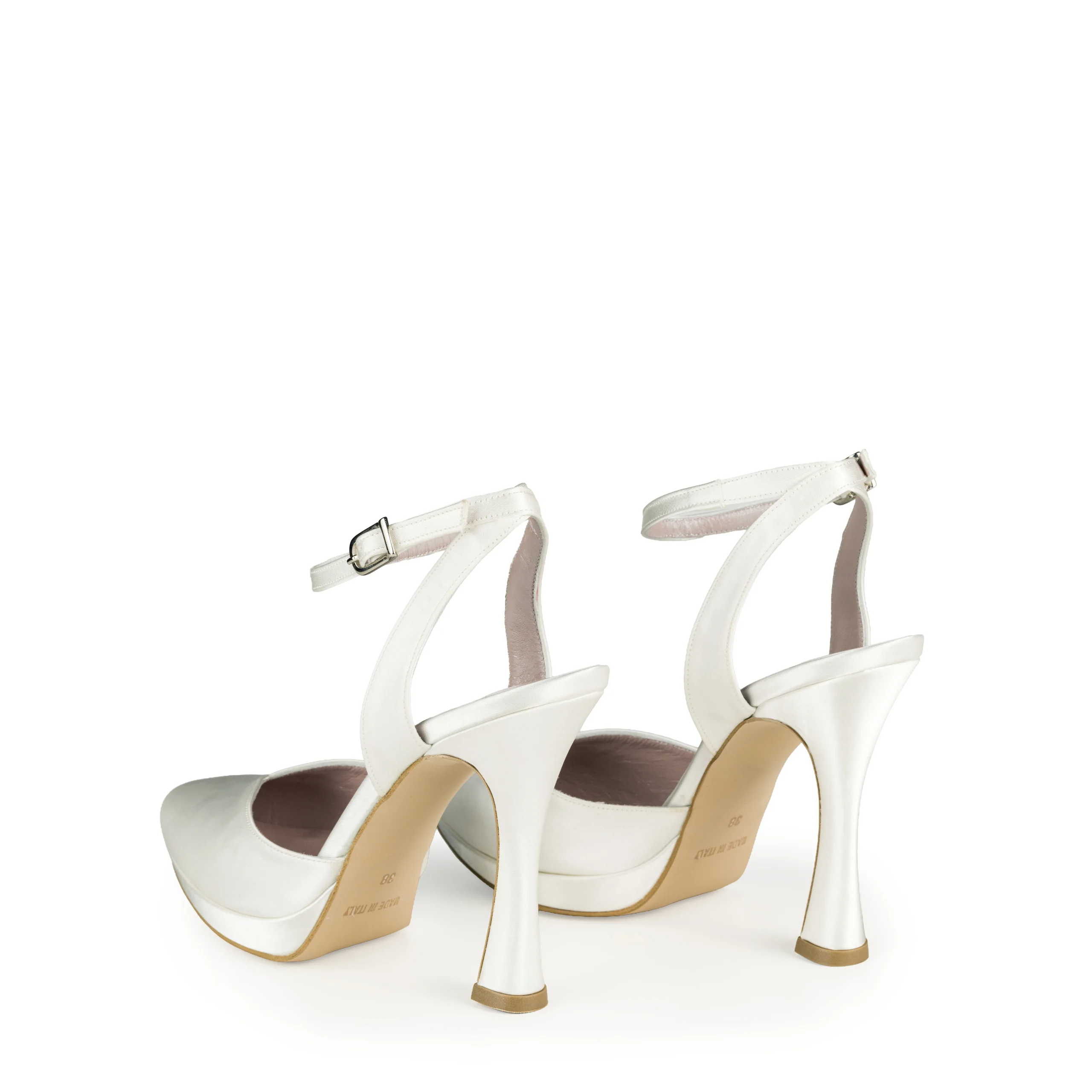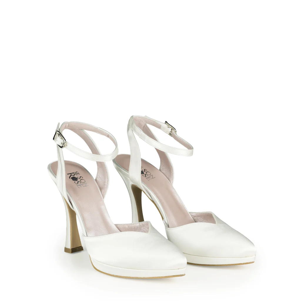 Tessuto Raso, colore Perla, tacco 110-3131. Scollo cuore.